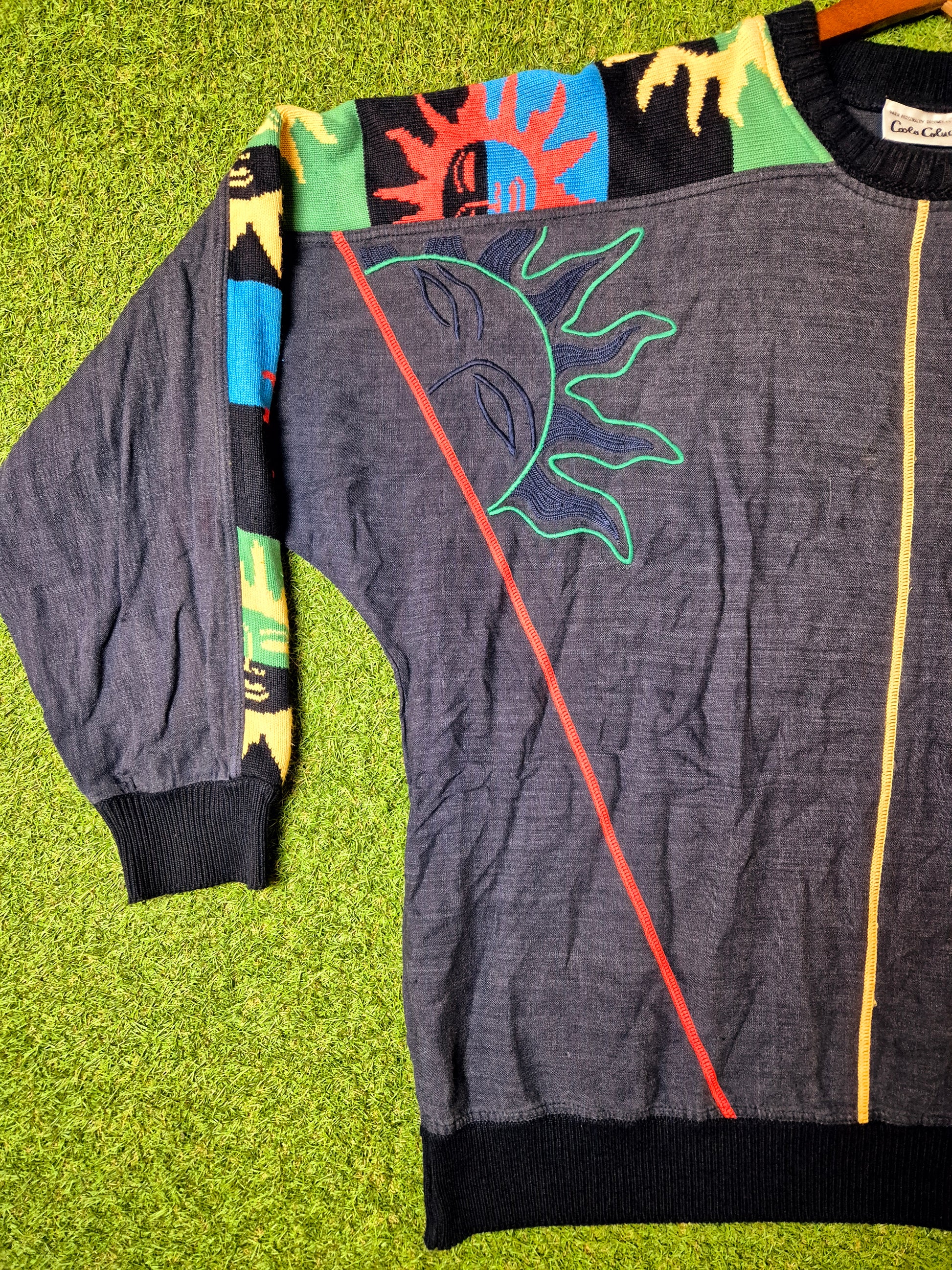Original/Auth Carlo Colucci - Vintage Pullover - Bunt mit Sonnen Muster - L/XL (56)
