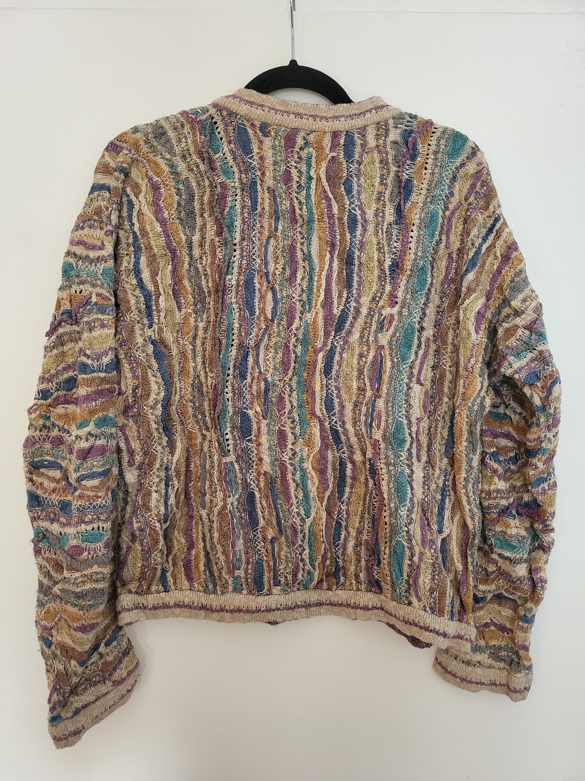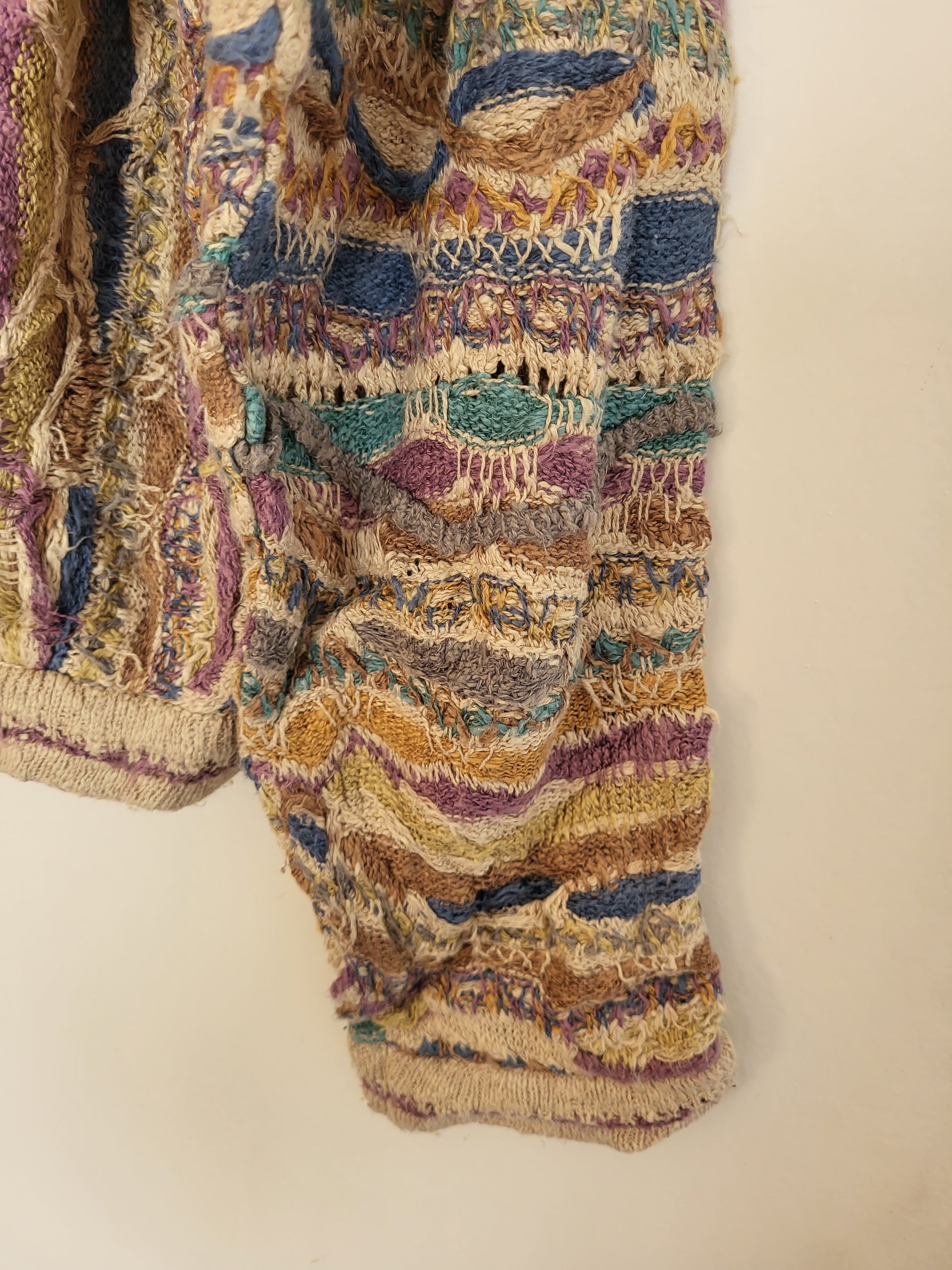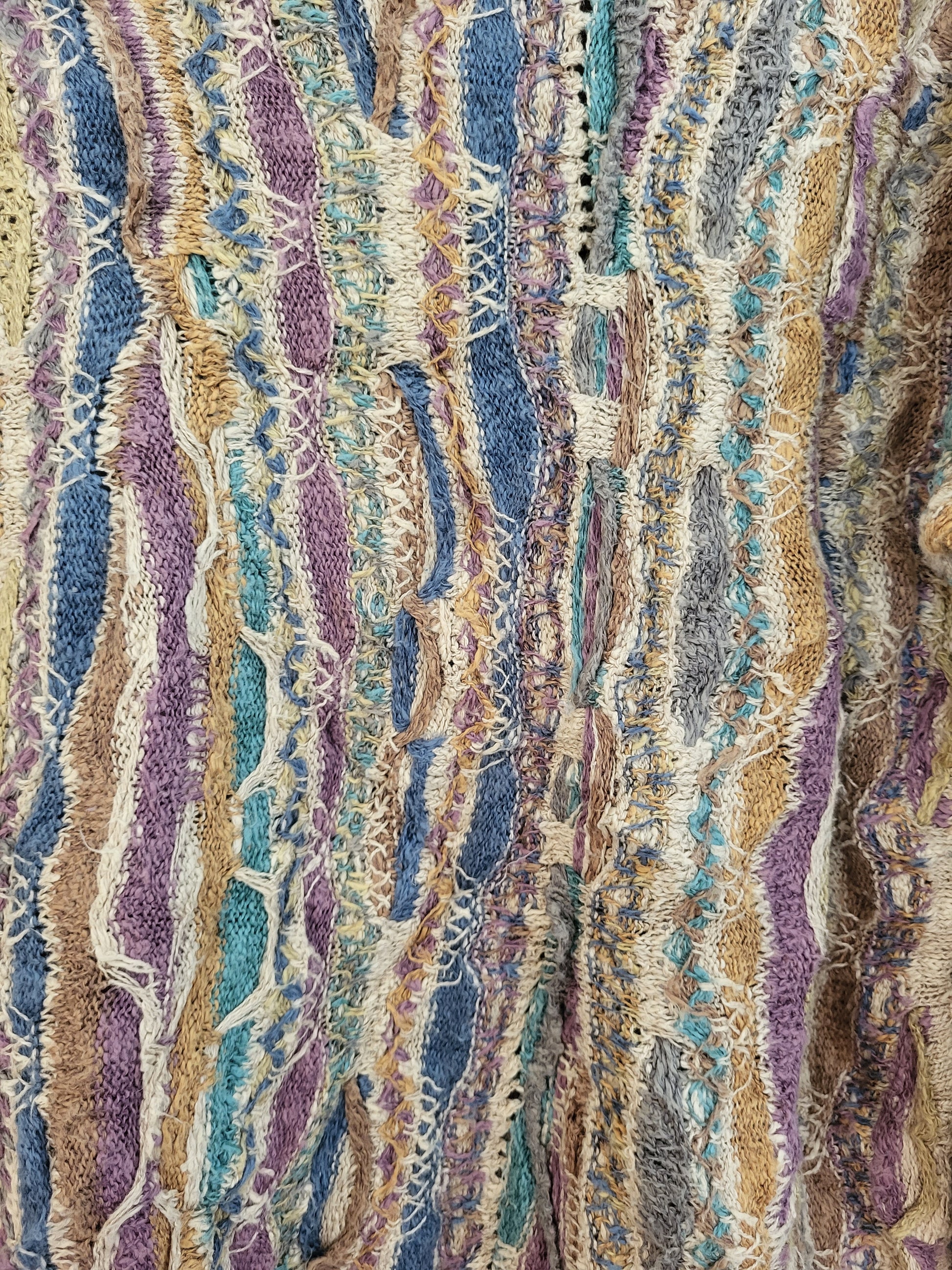 Sehr wertiger Stoff, fühlt sich wunderbar an. Typisches COOGI 3D-Muster der 90er Jahre. Schwere Verarbeitungsqualität und einzigartiges Muster.