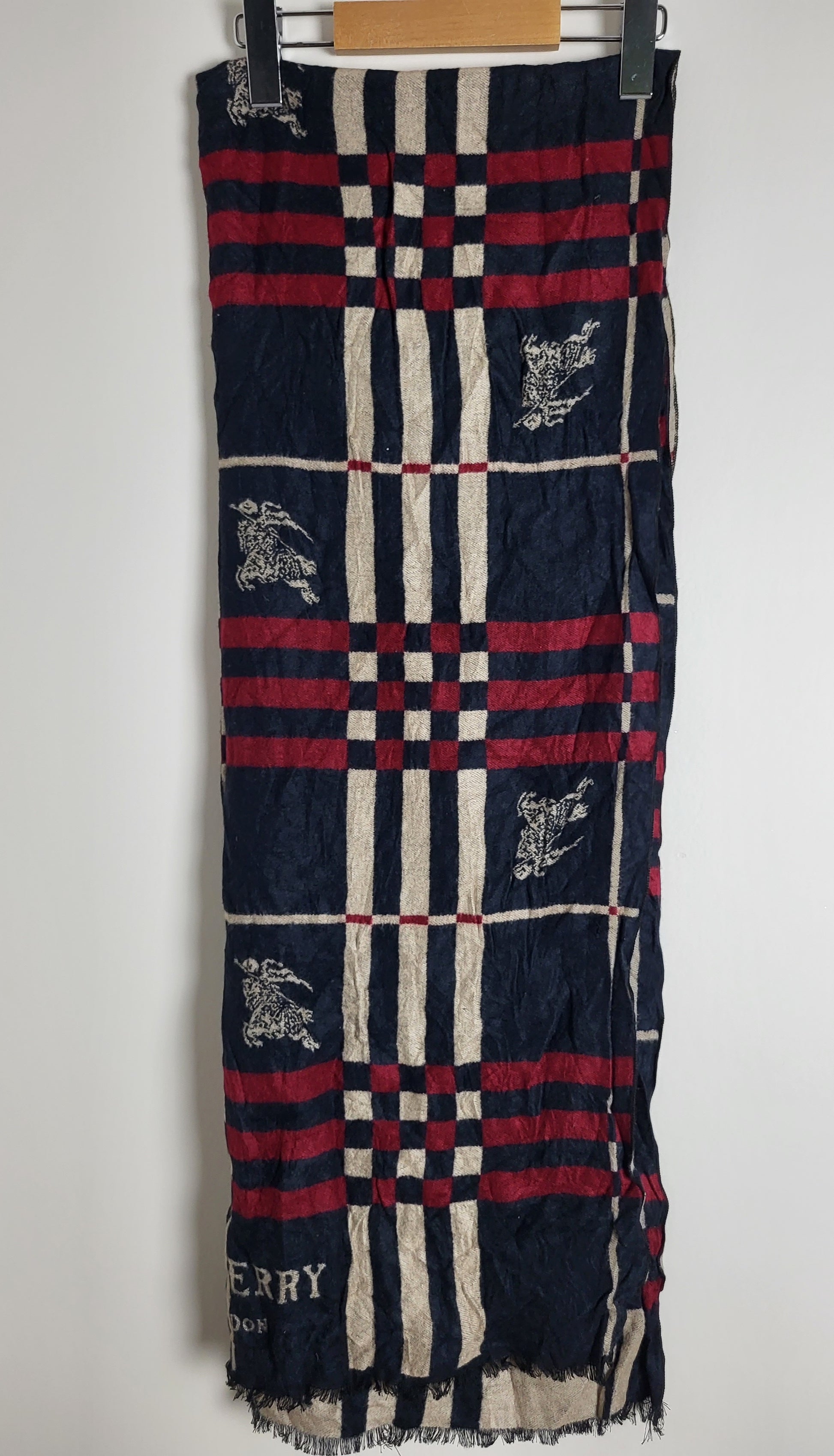 Burberry London - Vintage Schal / Tuch - Dunkelblau Logo - Kaschmir - 172 x 60