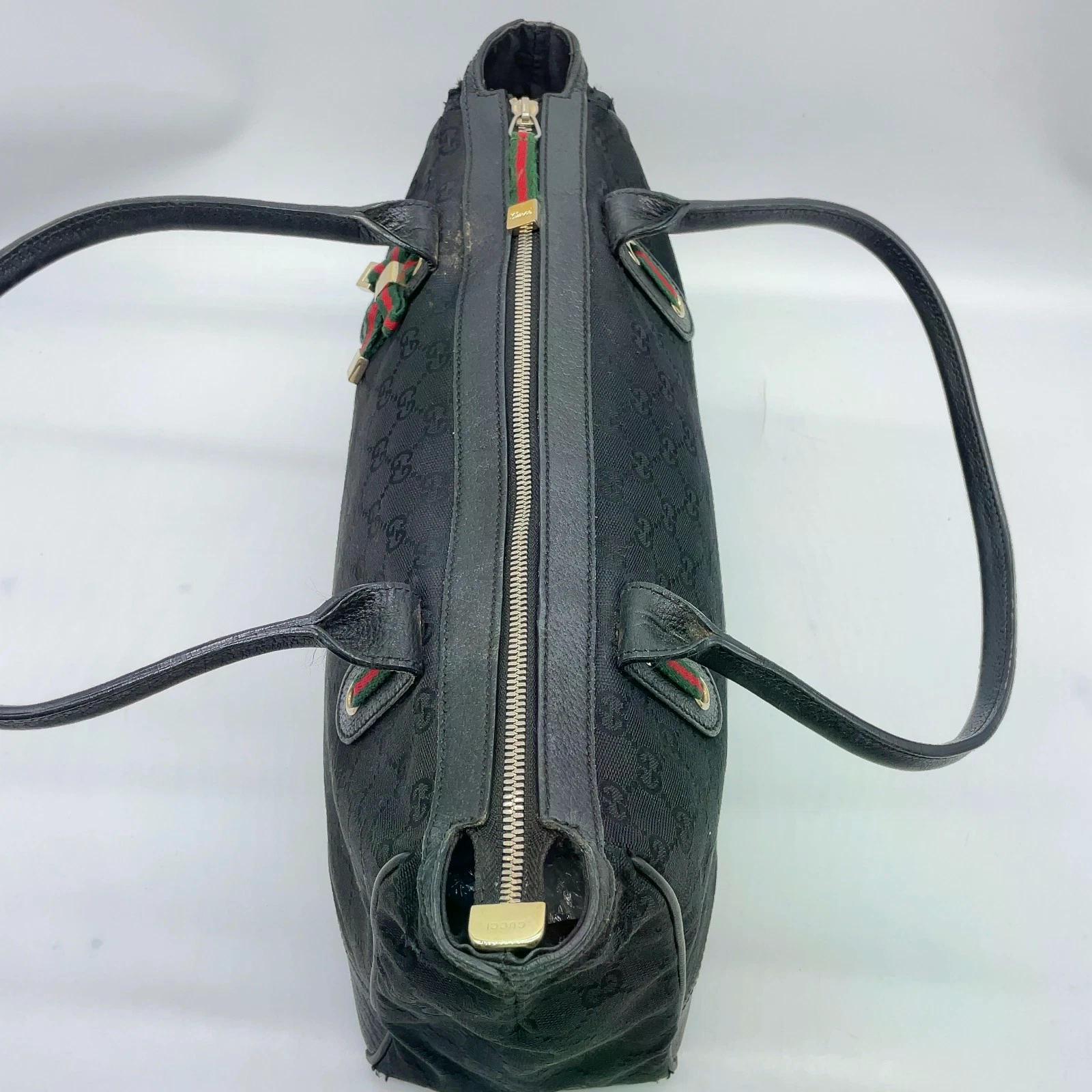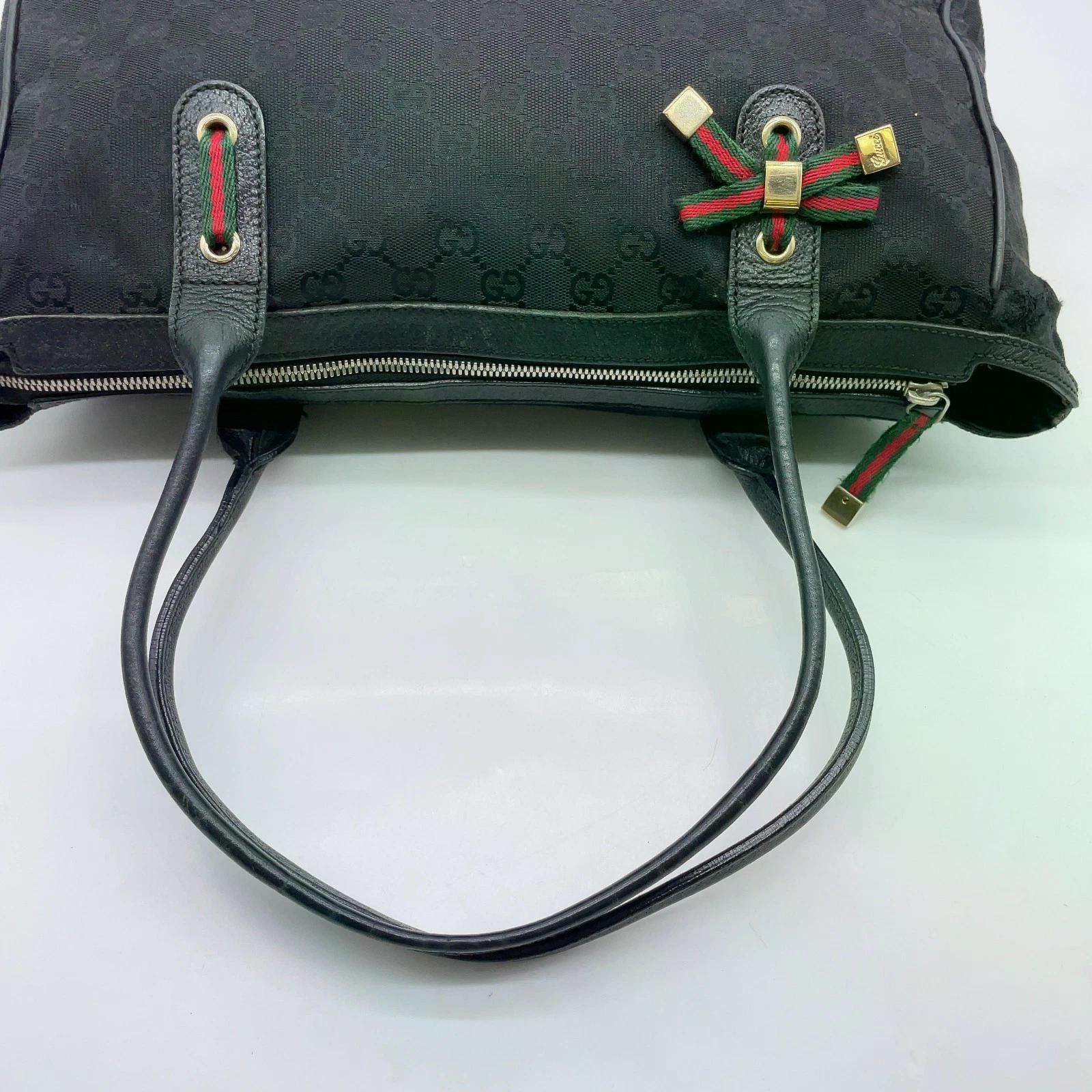 Diese originale Gucci Sherry Line GG Schwarz Princess Tote Bag verfügt über eine wunderbare Verarbeitungsqualität. Typisch Gucci eben.