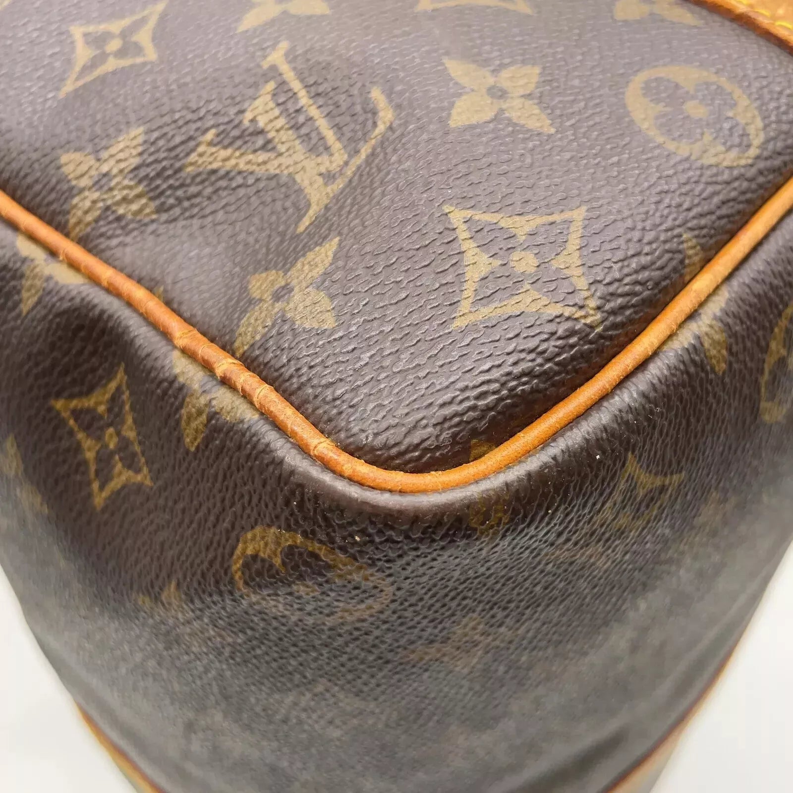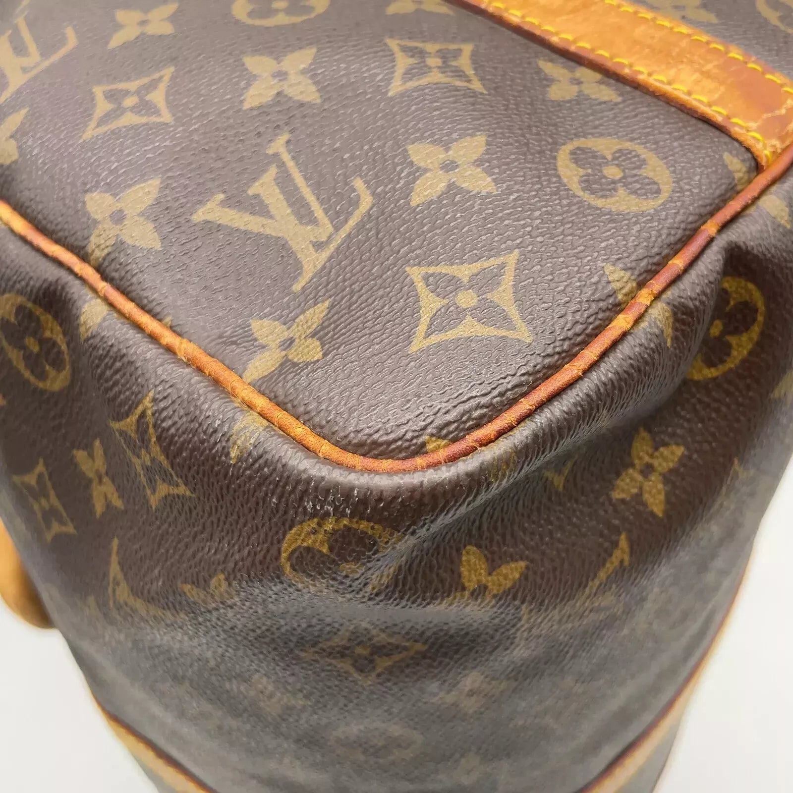Sehr guter Monogramm Vintage-Außenzustand, befriedigender bis guter Leder-Zustand, sehr guter Vintage-Innenzustand und hervorragende Verarbeitung. Reißverschluss in einem sehr guten Zustand. Schultertrageriemen ist nicht dabei, eine defekte Stelle am Leder wurde repariert (siehe Bilder).