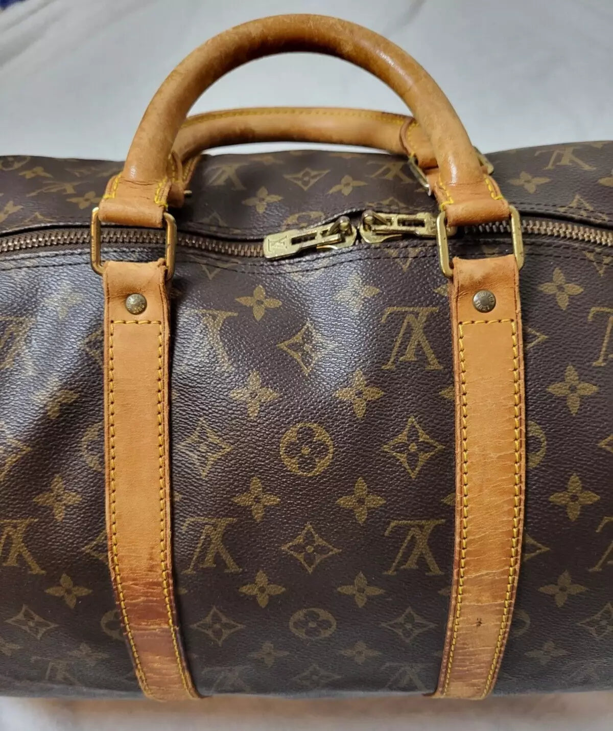 Diese originale Louis Vuitton Monogramm Keepall Bandouliere 50 Boston Tasche verfügt über eine wunderbare Verarbeitungsqualität. Typisch Louis Vuitton eben.
