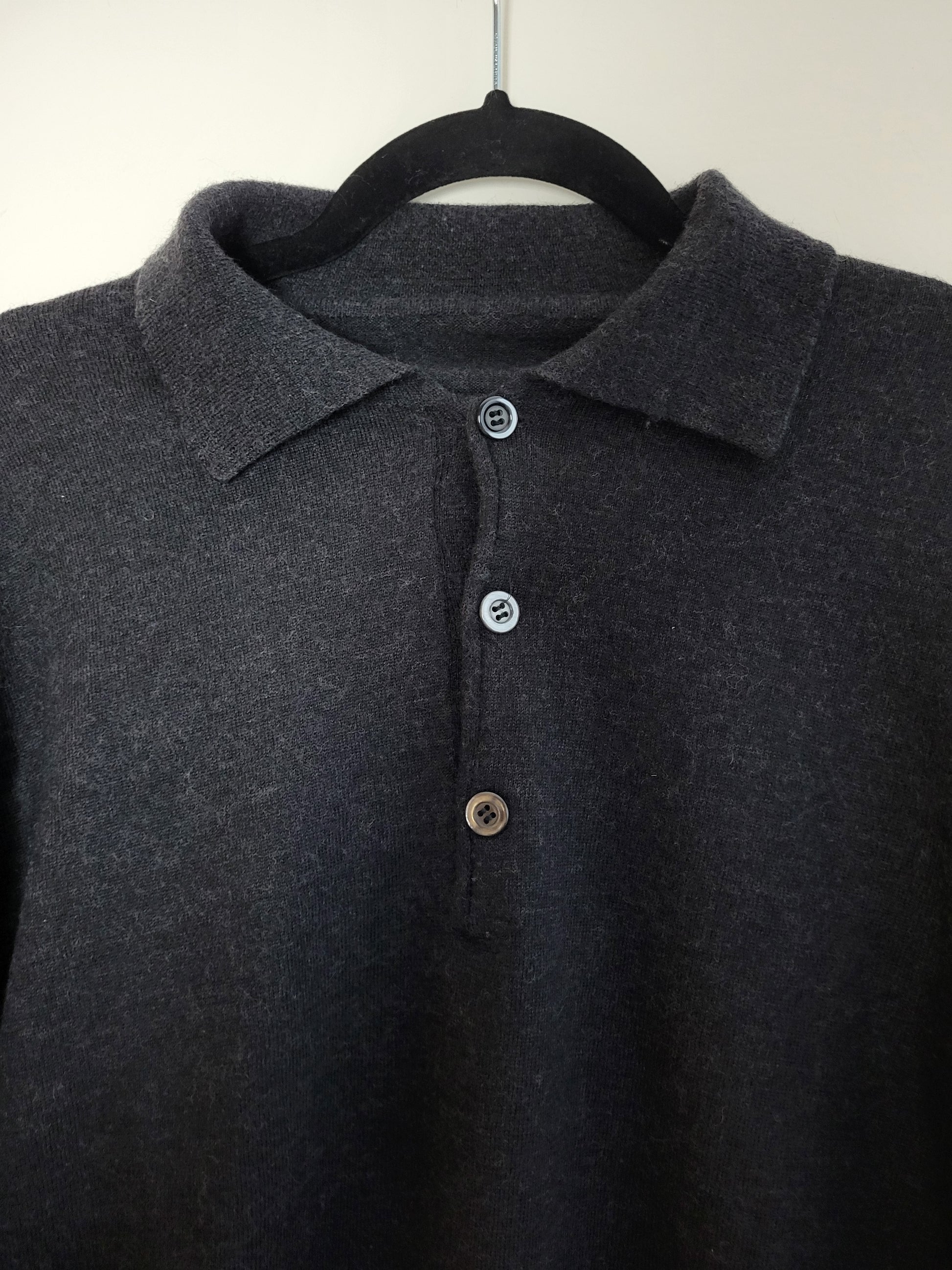 VINTAGE PULLOVER MIT KRAGEN UND KNOPFLEISTE ANTHRAZIT